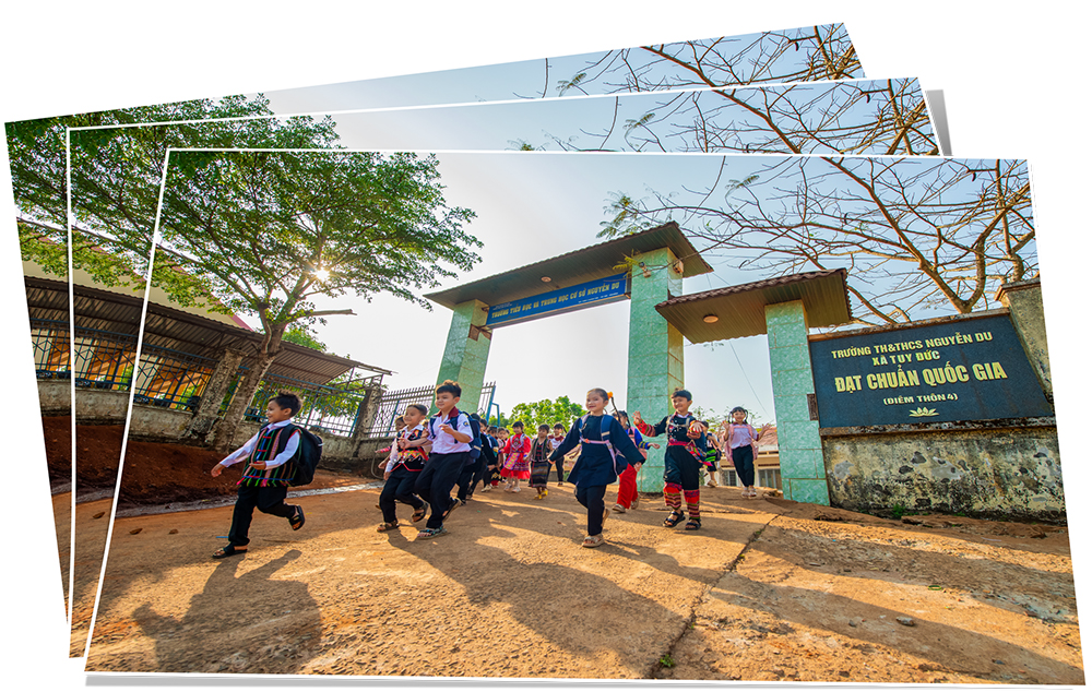“Mỗi ngày đến trường là một ngày vui” - đó không chỉ là khẩu hiệu quen thuộc mà còn là cảm nhận chân thực của thầy và trò cấp tiểu học thuộc Trường TH&THCS Nguyễn Du tại xã Tuy Đức (Lâm Đồng).