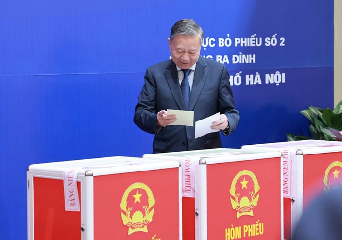 Tổng Bí thư Tô Lâm bỏ phiếu bầu cử đại biểu Quốc hội khóa XVI và đại biểu HĐND các cấp nhiệm kỳ 2026-2031. Ảnh: VGP/Nhật Bắc