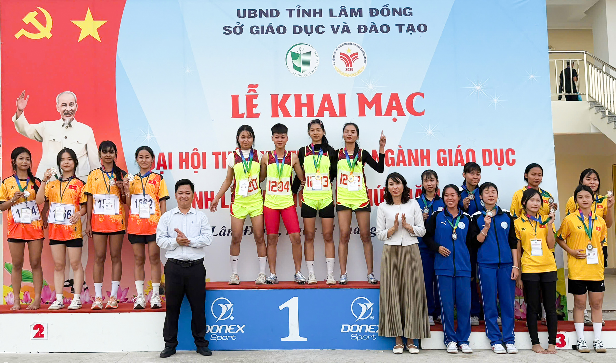 Ban Tổ chức trao HC đồng nội dung điền kinh tại Đại hội TDTT ngành Giáo dục tỉnh Lâm Đồng lần thứ I năm 2026