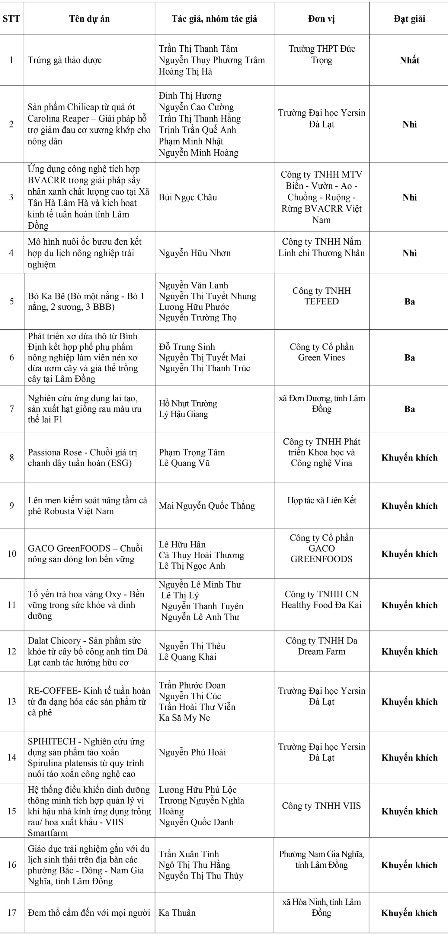Giải nhất bảng dự án thuộc về nhóm tác giả: Trần Thị Thanh Tâm, Nguyễn Thụy Phương Trâm, Hoàng Thị Hà, Trường THPT Đức Trọng với dự án Trứng gà thảo dược.