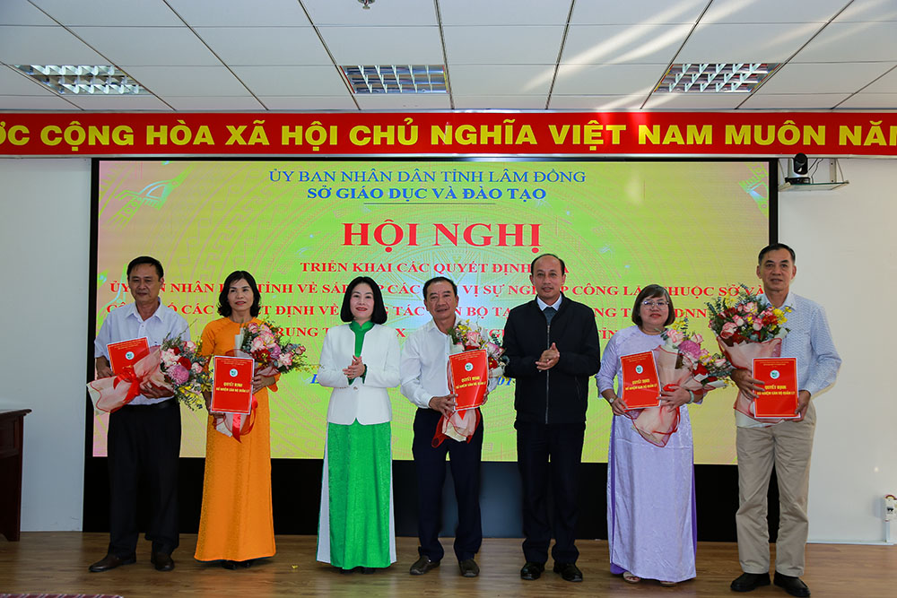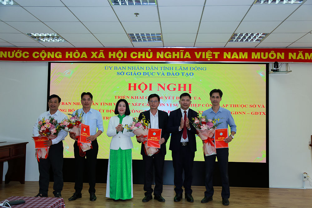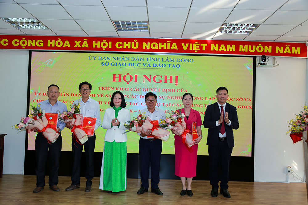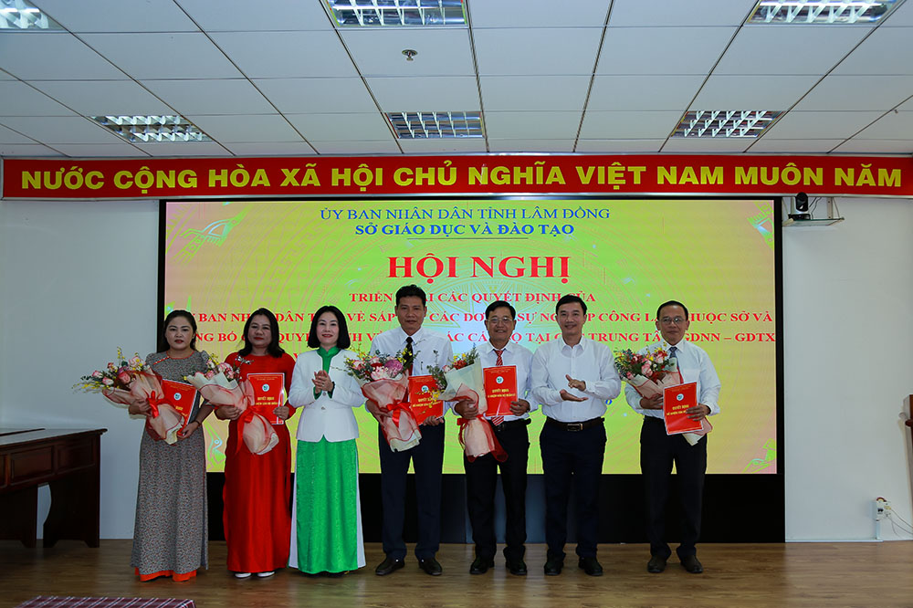 Tham dự Hội nghị có bà Lê Thị Bích Liên, Tỉnh ủy viên, Giám đốc Sở Giáo dục và Đào tạo tỉnh Lâm Đồng; cùng các đồng chí Phó Giám đốc Sở, lãnh đạo các phòng thuộc Sở và cán bộ quản lý các Trung tâm GDTX, GDNN-GDTX trên địa bàn tỉnh. Cùng với việc công bố các quyết định thành lập, Sở Giáo dục và Đào tạo tỉnh Lâm Đồng đã công bố các quyết định bổ nhiệm cán bộ quản lý các trung tâm sau khi hợp nhất. Cụ thể: