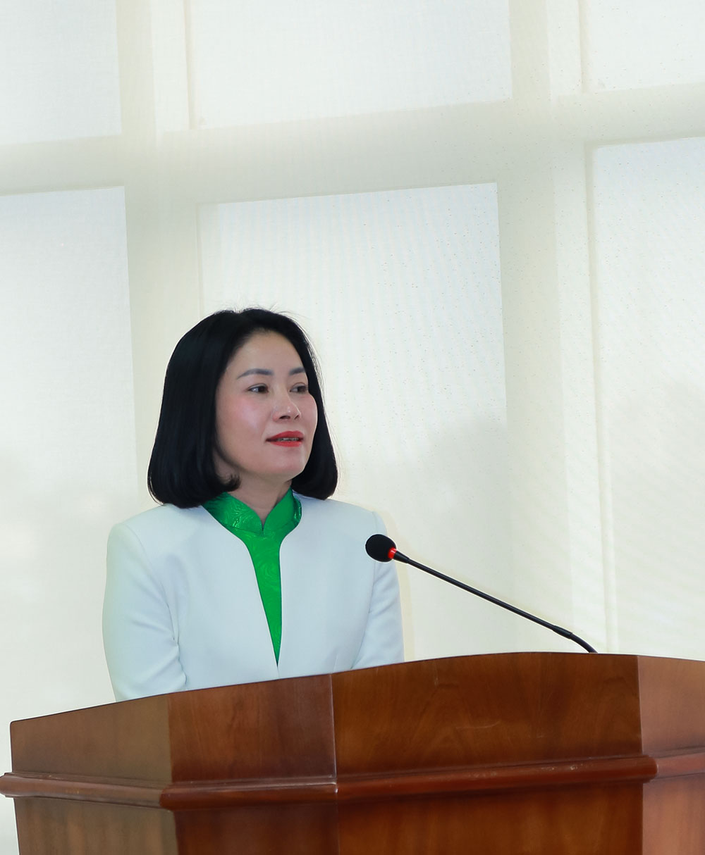 Bà lê Thị Bích Liên, TUV, Giám đốc Sở GDĐT phát biểu giao nhiệm vụ cho lãnh đạo các trung tâm sau hợp nhất