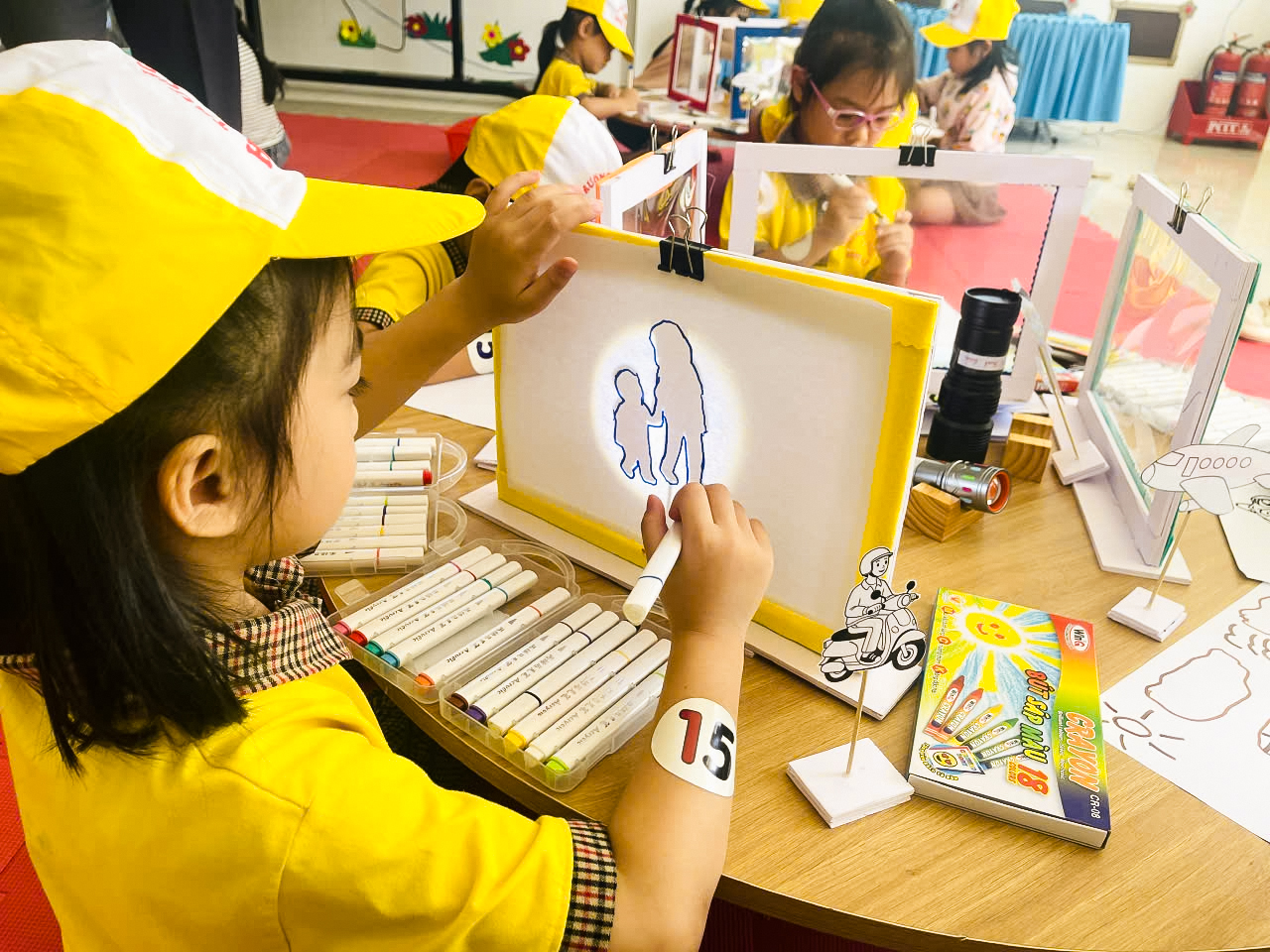 Các bé trường Mẫu giáo Hoa Lư tham gia vẽ tranh theo bóng và chuyển động tranh bằng AI