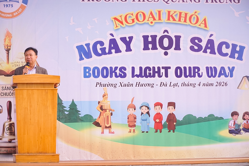 Sáng 16/4/2026, Trường THCS Quang Trung (phường Xuân Hương, TP. Đà Lạt) tổ chức Ngày hội sách với chủ đề “Books Light Our Way” (Sách thắp sáng con đường chúng ta), hưởng ứng Ngày Sách và Văn hóa đọc Việt Nam lần thứ V. Chương trình thu hút đông đảo cán bộ, giáo viên và học sinh tham gia, tạo không khí sôi nổi, lan tỏa tình yêu đọc sách trong nhà trường.