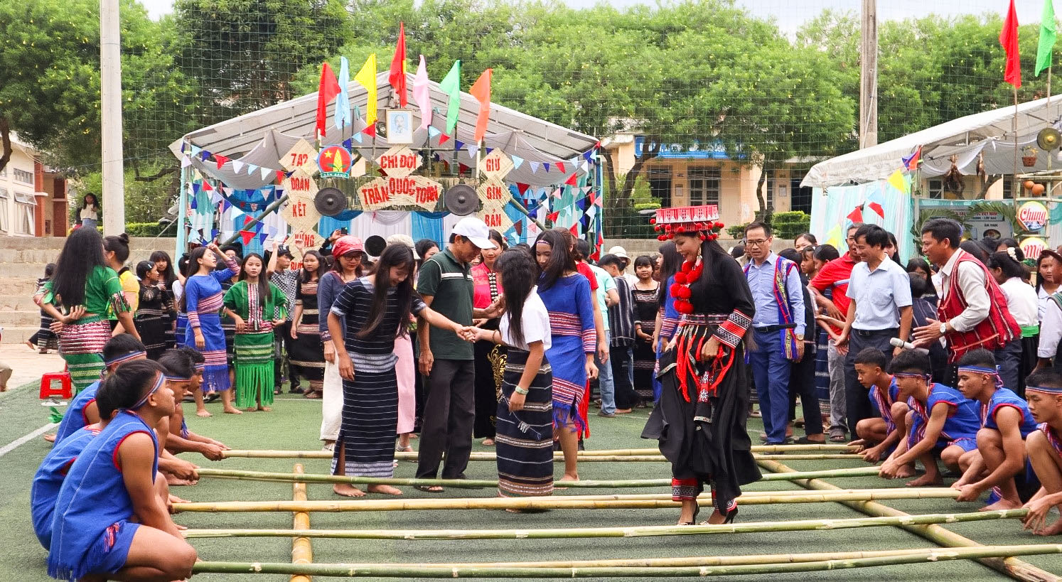 Trong khuôn khổ Ngày hội, học sinh còn được tham gia các trò chơi dân gian như ném còn, đi cà kheo; hòa mình vào không gian văn hóa với múa sạp, múa xoan và âm thanh cồng chiêng Tây Nguyên rộn ràng. Các hoạt động góp phần tạo sân chơi lành mạnh, tăng cường giao lưu và gắn kết giữa học sinh các dân tộc.