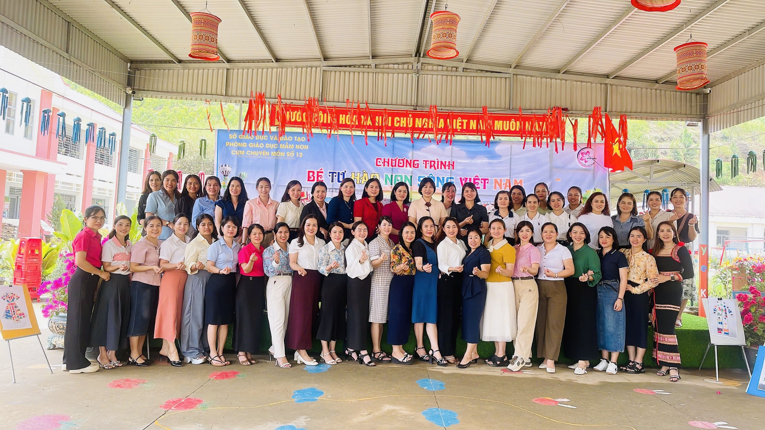 Lấy chủ đề "Bé tự hào với non sông Việt Nam", Chuyên đề hướng đến một mục tiêu giáo dục giàu chiều sâu: giúp trẻ mầm non cảm nhận và trân trọng lịch sử dân tộc theo cách phù hợp với lứa tuổi, từ ý nghĩa ngày 30/4, ký ức Giỗ Tổ Hùng Vương, đến vẻ đẹp bản sắc văn hóa dân tộc H'Mông ngay trên mảnh đất các em đang lớn lên. Đây không đơn thuần là một sự kiện chuyên môn, mà là không gian giáo dục sống động, nơi tình yêu quê hương được gieo mầm bằng chính những trải nghiệm hồn nhiên, chân thực của tuổi thơ.
