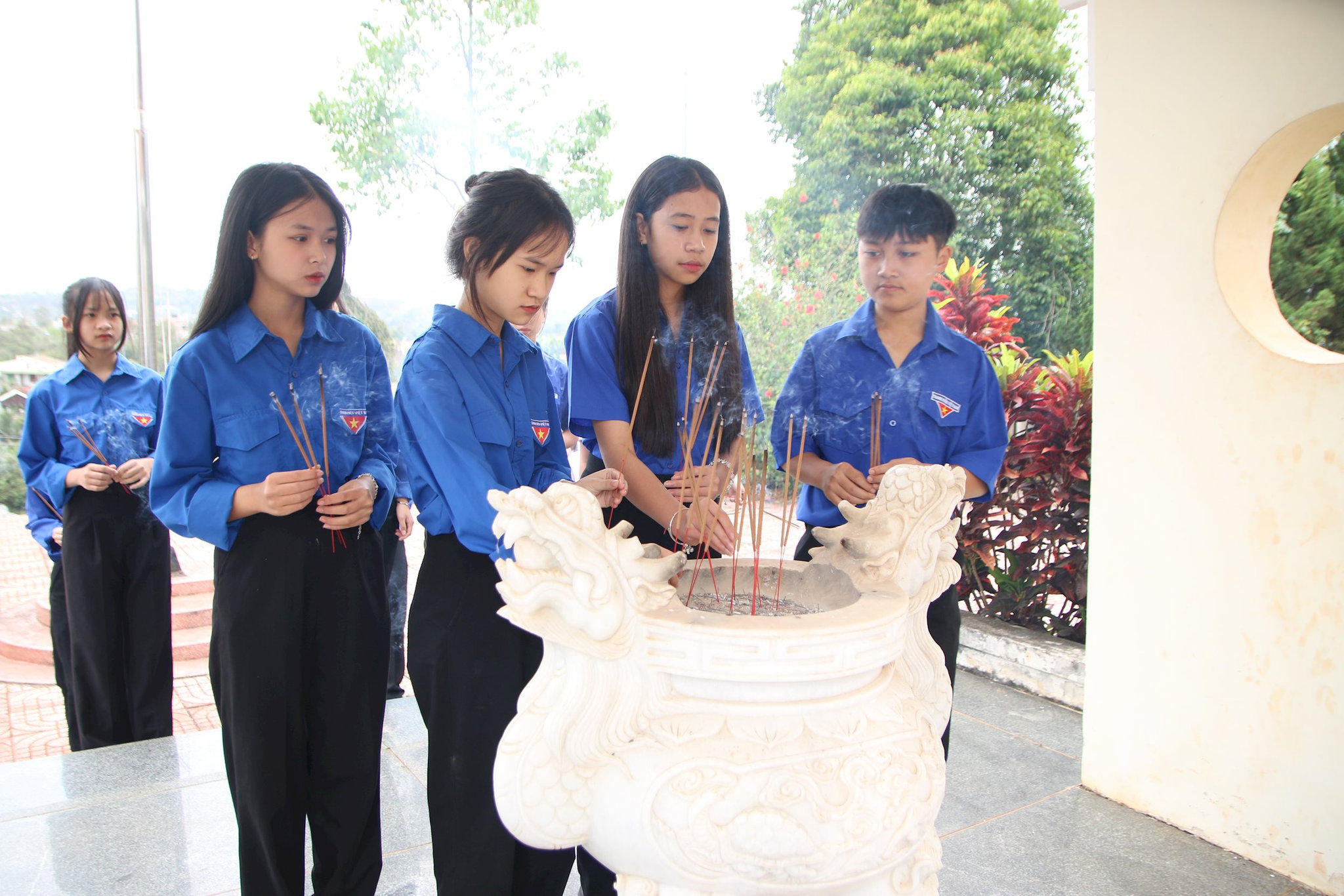 Một buổi sáng, trong làn sương còn vương trên những triền đồi, từng hàng học sinh chỉnh tề tiến vào khu vực Đài tưởng niệm. Không ồn ào, không náo nhiệt, các em lặng lẽ dâng hương, cúi đầu tưởng niệm những anh hùng liệt sĩ đã ngã xuống vì độc lập, tự do của dân tộc.