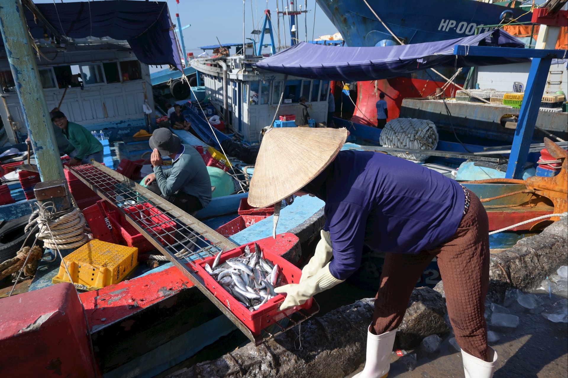 Hoạt động khai thác hải sản của ngư dân tại Cảng cá Phan Thiết.