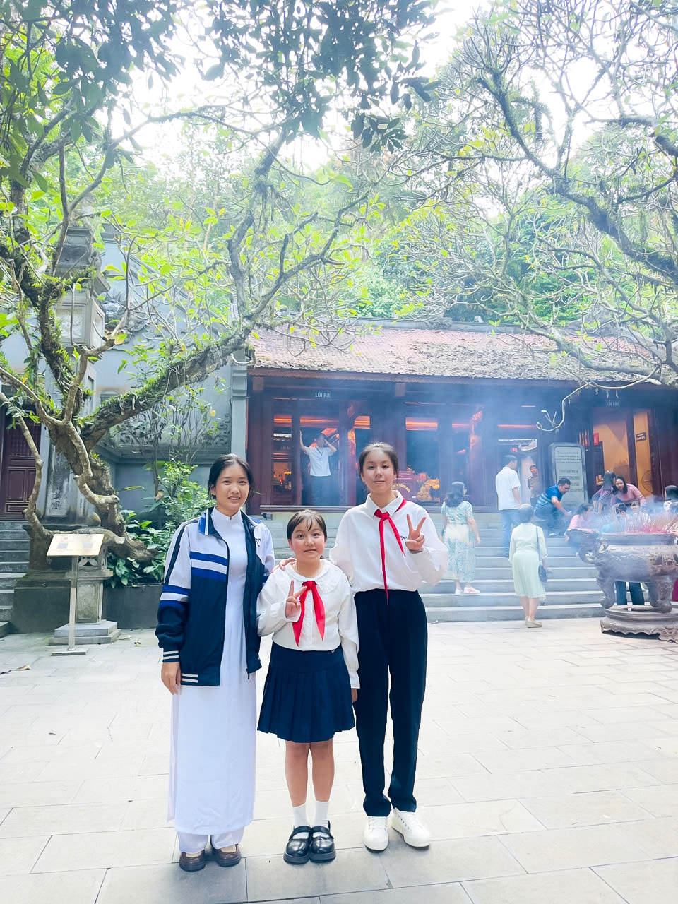 Từ trái qua: em Nguyễn Thanh Thảo Uyên, Nguyễn Hương Thảo và Nguyễn Trần Khanh Hân dâng hương các Vua Hùng