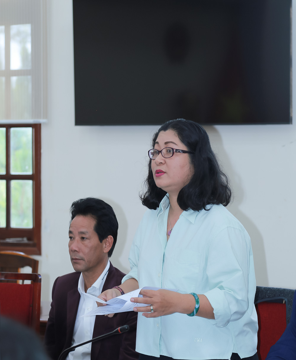 Cô Võ Hà Tuyết Hạnh, Nhà giáo tiêu biểu cấp Bộ, Giáo viên Trường THCS Nguyễn Du, phường Xuân Hương, Đà Lạt, thành viên Hội đồng phát biểu ý kiến