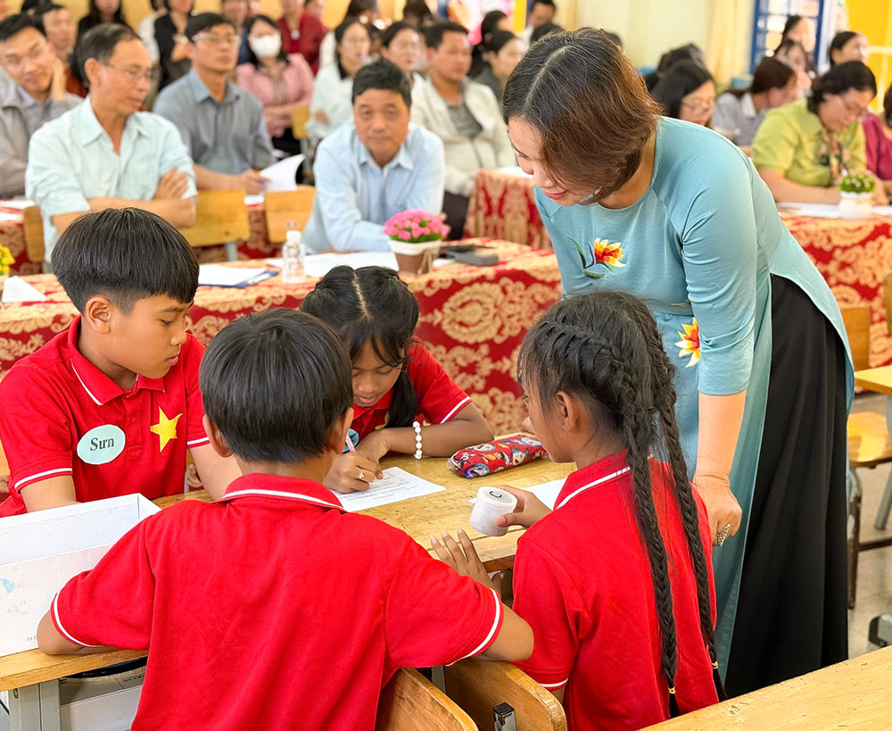 Tiết dạy được tổ chức khoa học, linh hoạt, chú trọng hoạt động nhóm, khuyến khích học sinh chủ động tham gia, hợp tác, trao đổi và trình bày ý tưởng. Vai trò của giáo viên được thể hiện rõ nét ở vị trí người hướng dẫn, hỗ trợ, tạo điều kiện để học sinh phát triển tư duy sáng tạo, năng lực giải quyết vấn đề và kỹ năng thực hành – những năng lực cốt lõi mà giáo dục STEAM hướng tới.