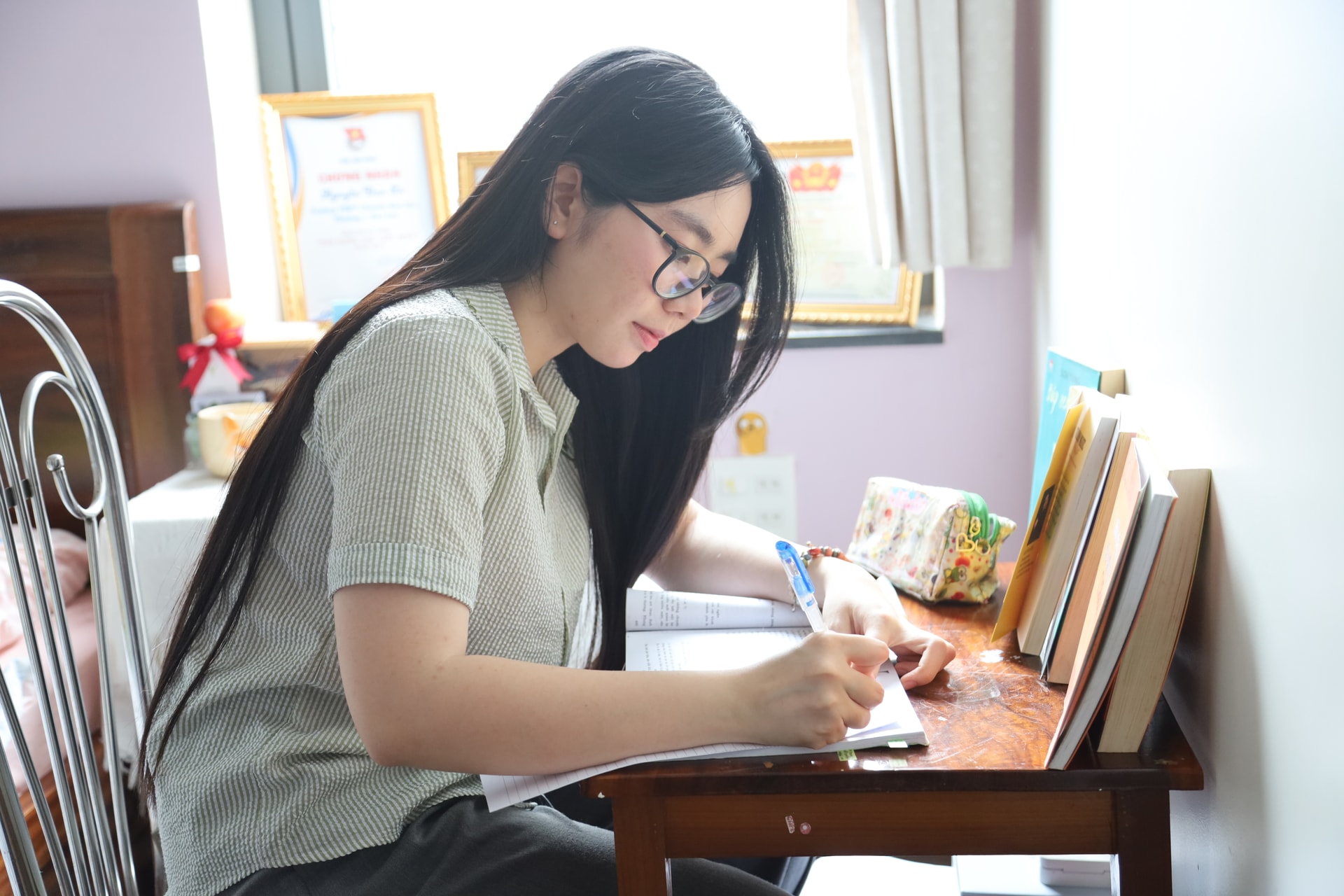 Những lần bài viết chưa đạt như mong muốn, những buổi thi thử chưa cho kết quả cao, không làm em Đan Lê nản lòng. Em chọn cách sửa từng lỗi nhỏ, viết lại từng đoạn chưa tròn ý, luyện cách diễn đạt sao cho vừa đúng, vừa có chiều sâu. Chính sự nghiêm túc ấy đã giúp em từng bước trưởng thành, để rồi liên tiếp ghi dấu ấn ở các kỳ thi lớn.