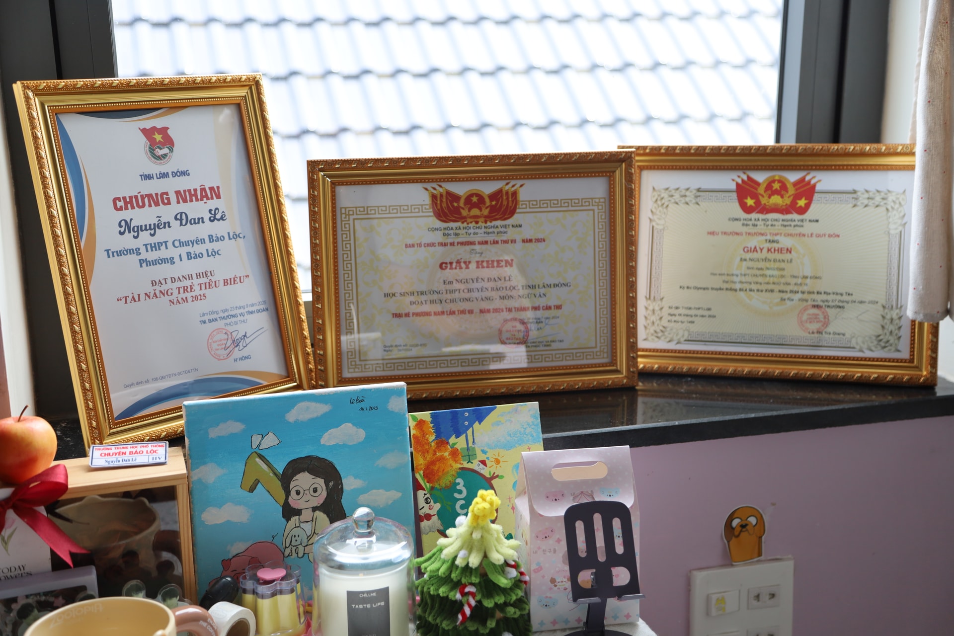 Em Đan Lê được Tỉnh đoàn Lâm Đồng vinh danh với danh hiệu “Tài năng trẻ tiêu biểu” cấp tỉnh năm 2025 cùng nhiều giấy khen của các đơn vị vì đạt thành tích cao trong học tập và rèn luyện