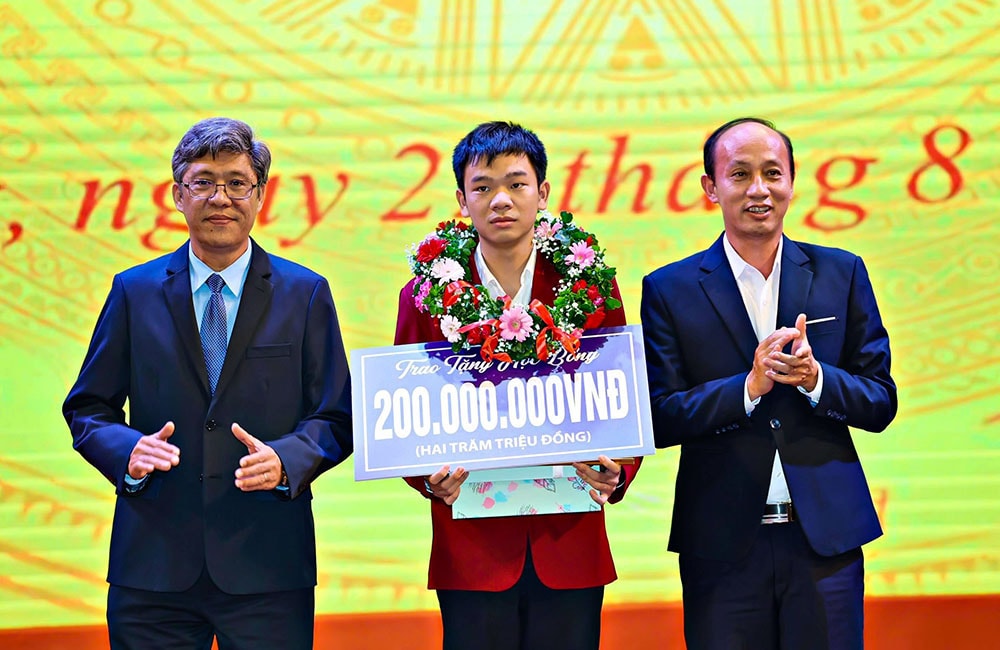 Đặng Huy Hậu trong lễ tuyên dương học sinh giỏi tỉnh Lâm Đồngnăm học 2024 - 2025.